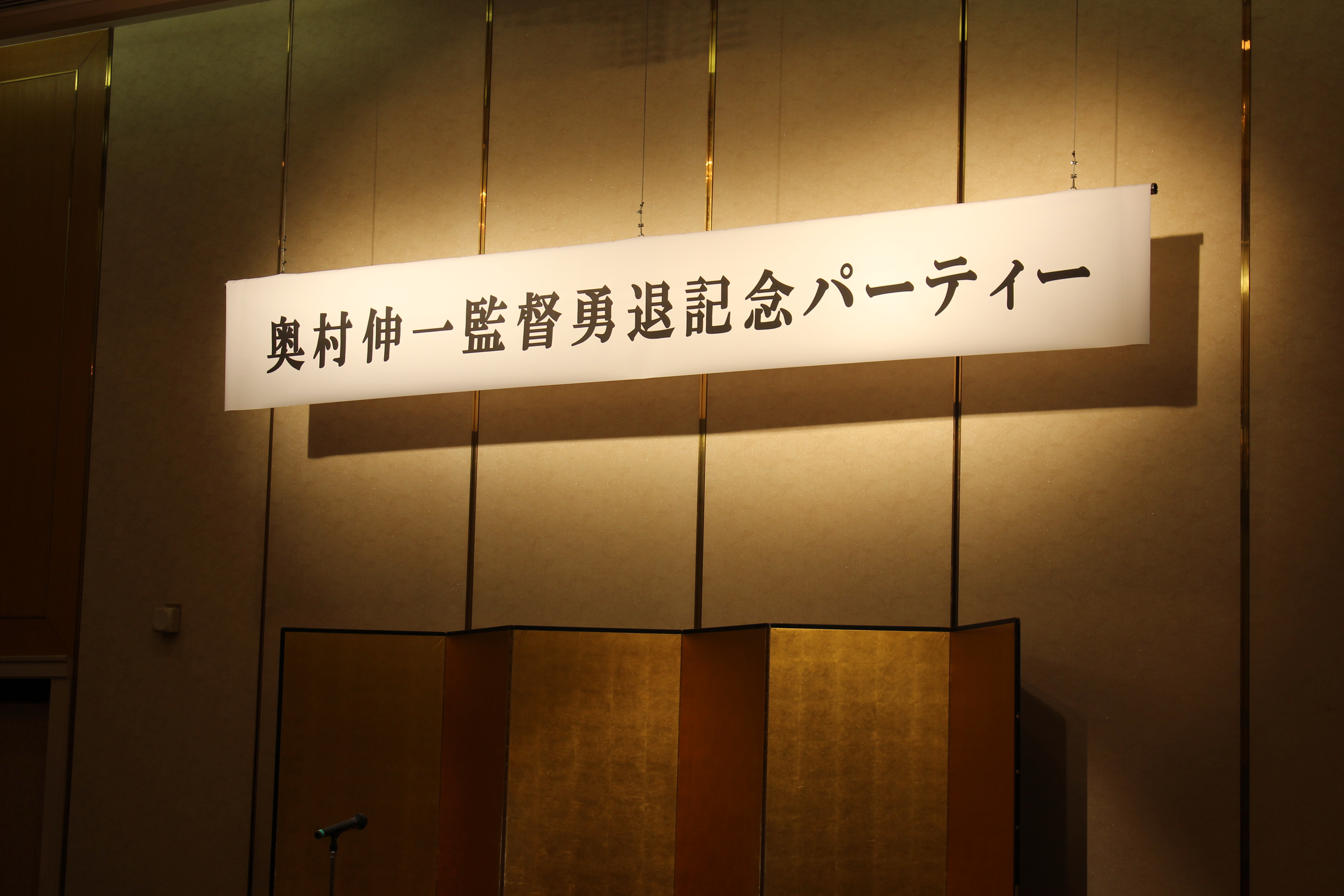 2019年11月30日草津エストピアホテルにおいて、甲西高校硬式野球部の奥村前監督の勇退記念パ-ティ-を行いました。教え子50名、野球部OB会より30名、計80名が集まり盛大に開催することできました。